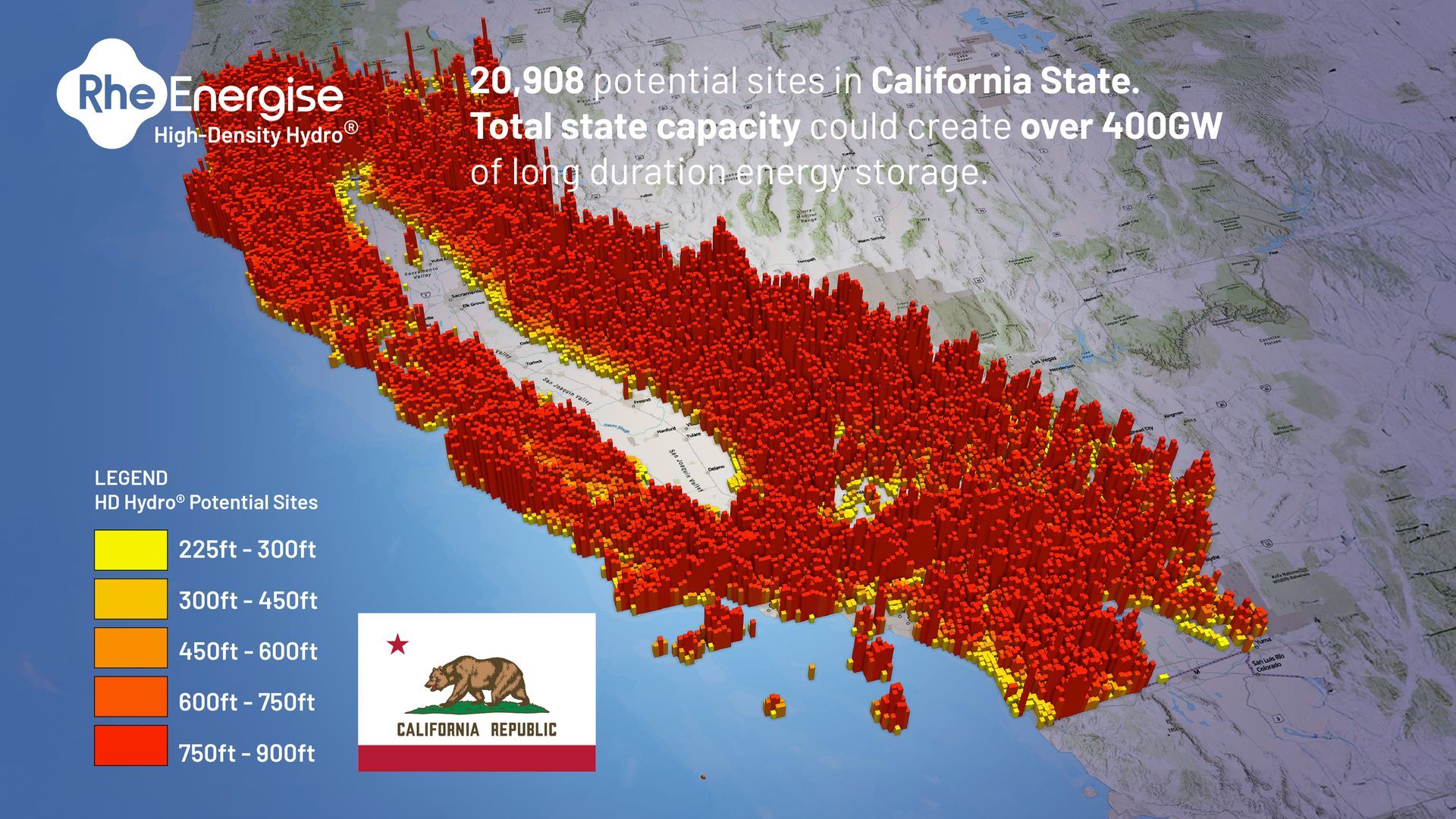 RheEnergise has the solution: our High-Density Hydro® (HD Hydro®) long-duration energy storage technology. Utilizing our in house GIS capabilities and analysis of California, we have identified abundant opportunities for HD Hydro® projects, all over the state.