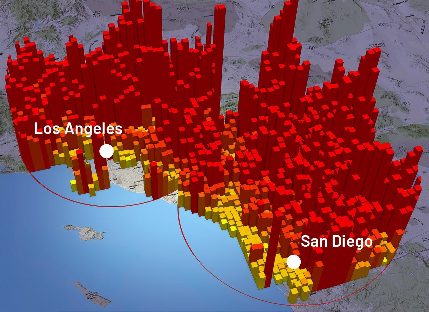 Los Angeles: ~ 853 possible sites within 60 miles San Diego: ~ 1008 possible sites within 60 miles